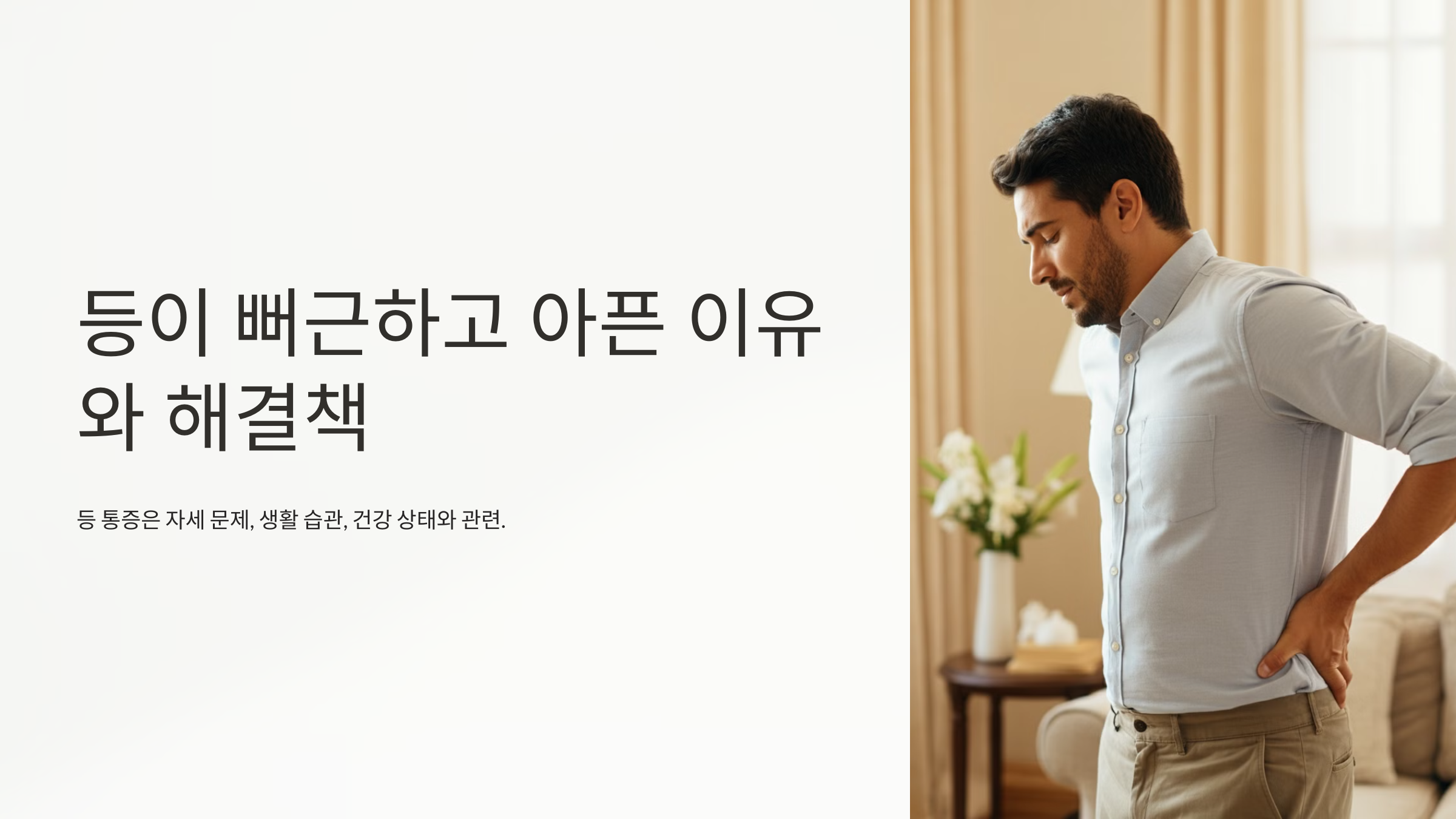 등이 뻐근하고 아프다면, 단순히 자세 문제에서 오는 근육 피로일 수도 있지만, 생활 습관이나 건강 상태와도 관련이 있을 수 있습니다. 아래에서 주요 원인과 해결책을 구체적으로 알아보겠습니다.