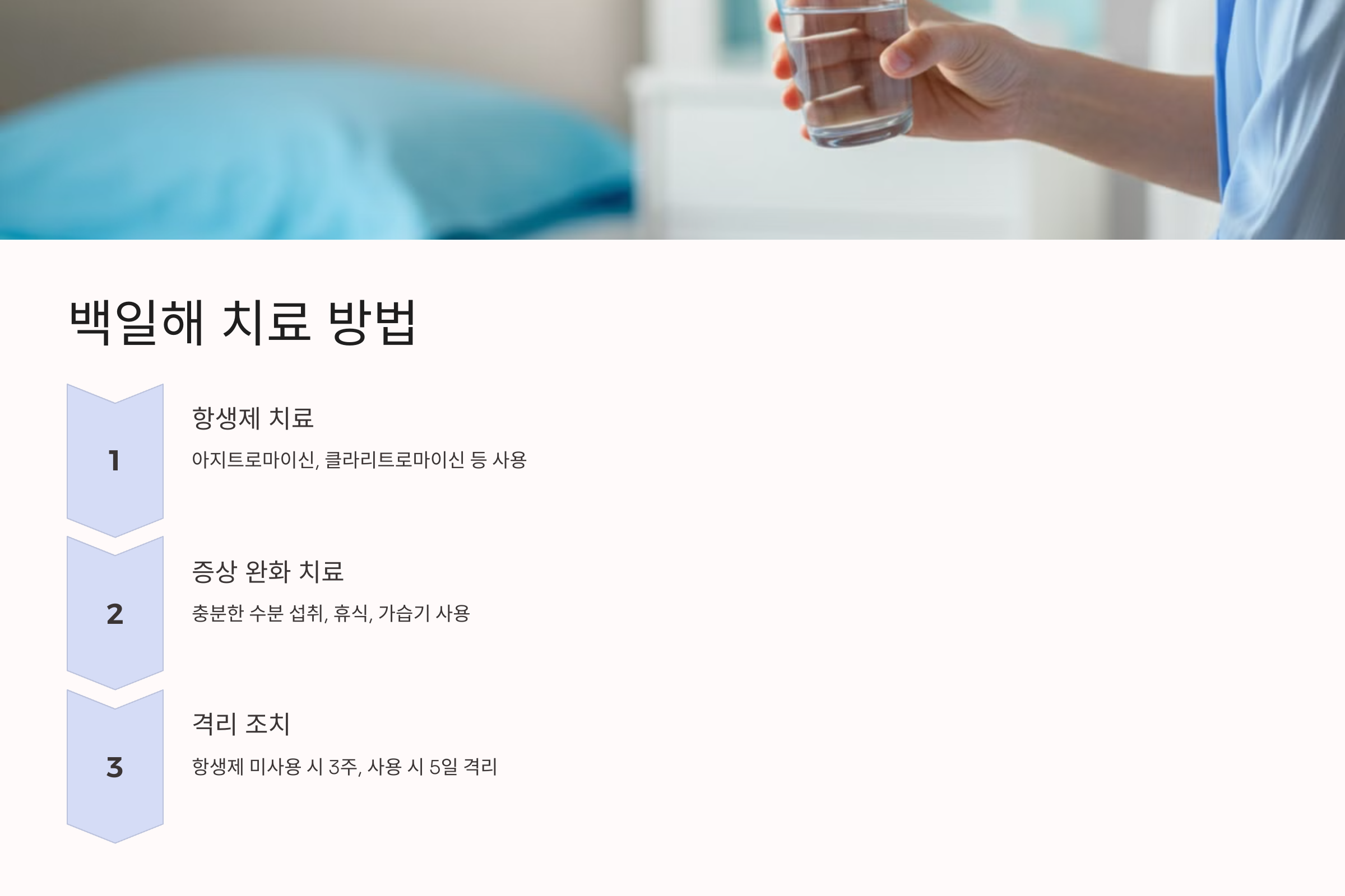 - 발병 초기에 항생제를 사용하면 증상 완화와 전염 방지에 효과적입니다.