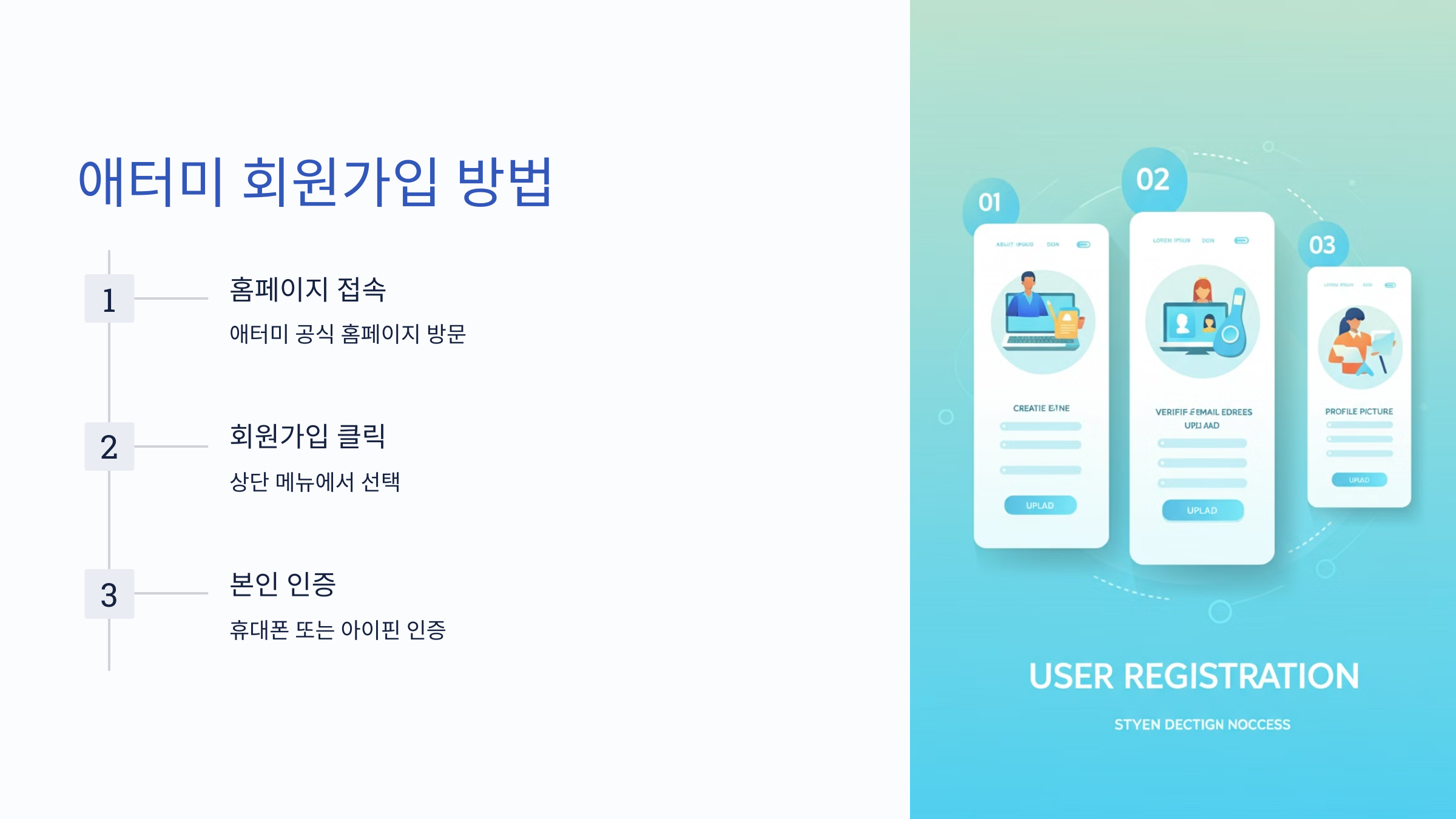 애터미의 주요 서비스를 이용하려면 회원가입이 필요합니다. 아래 단계를 따라 가입을 진행하세요.