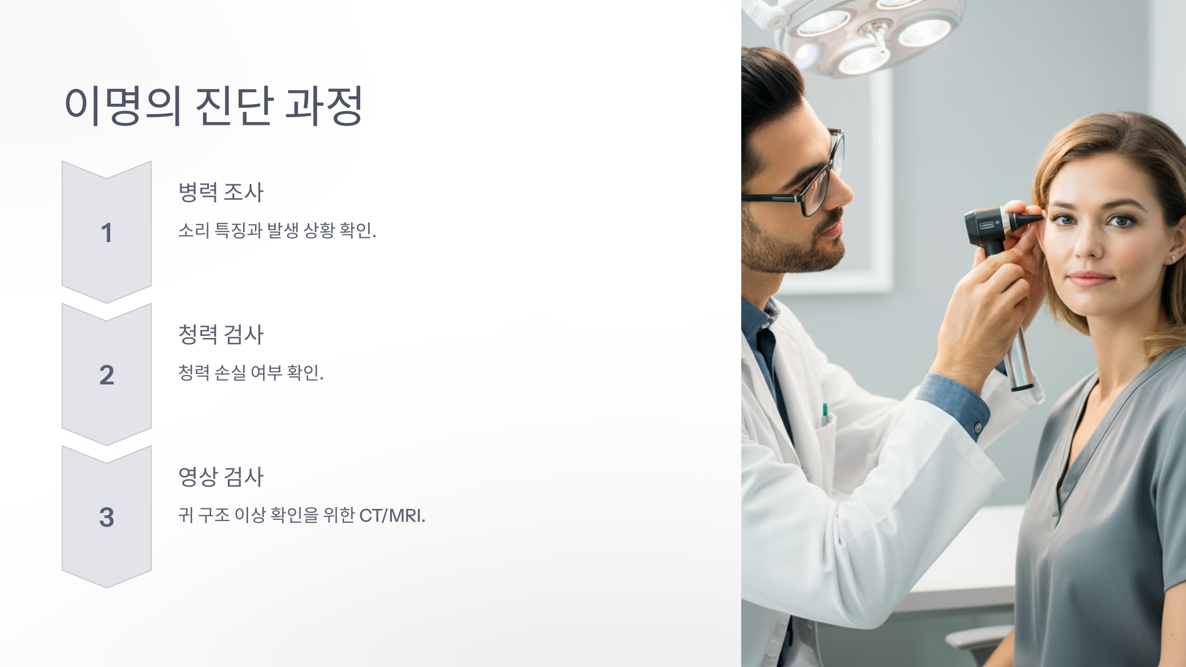 이명을 정확히 진단하려면 다음 과정을 거칩니다: