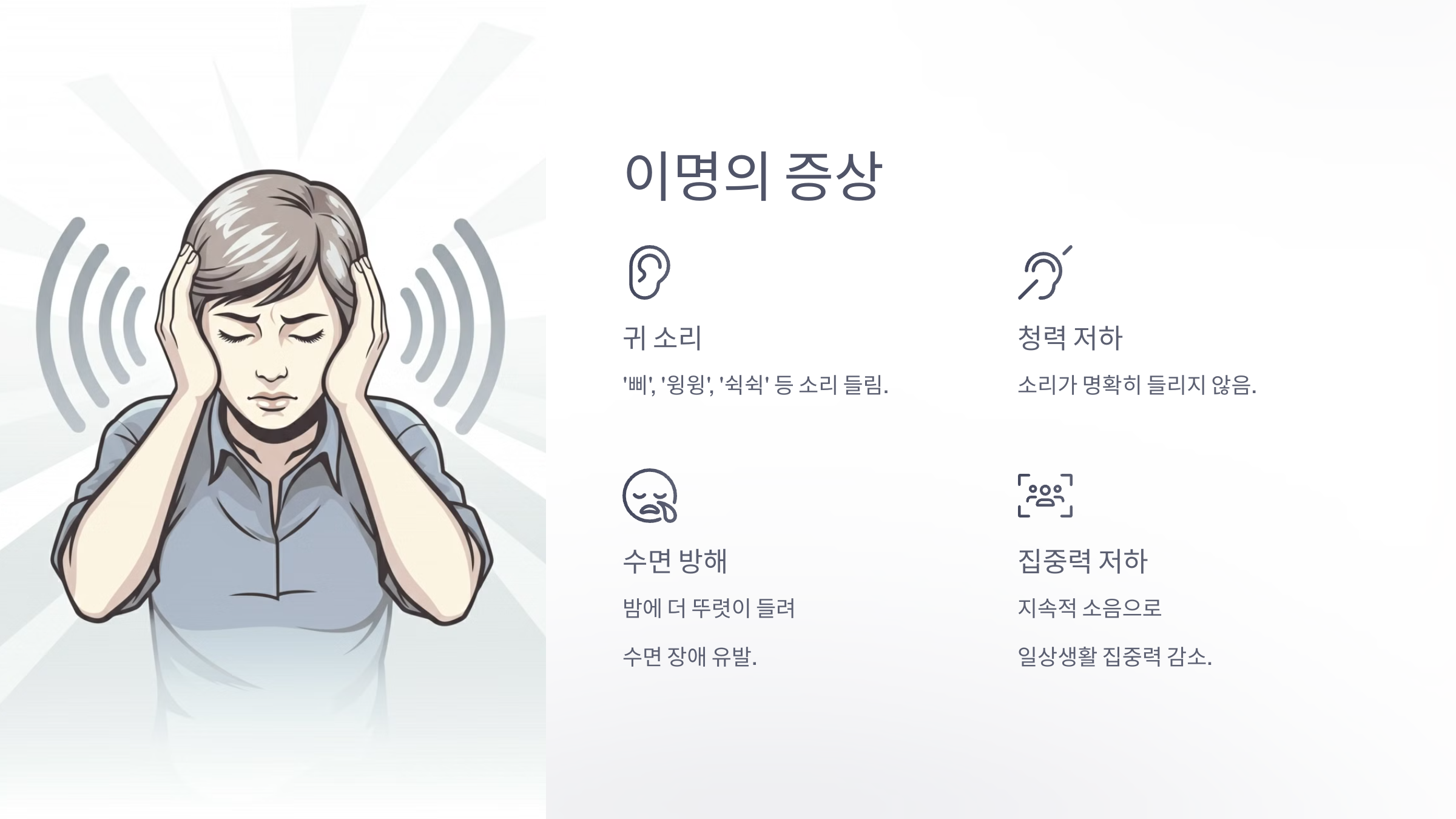 - 메커니즘: 과도한 스트레스는 신경계를 과민하게 만들어 이명을 초래