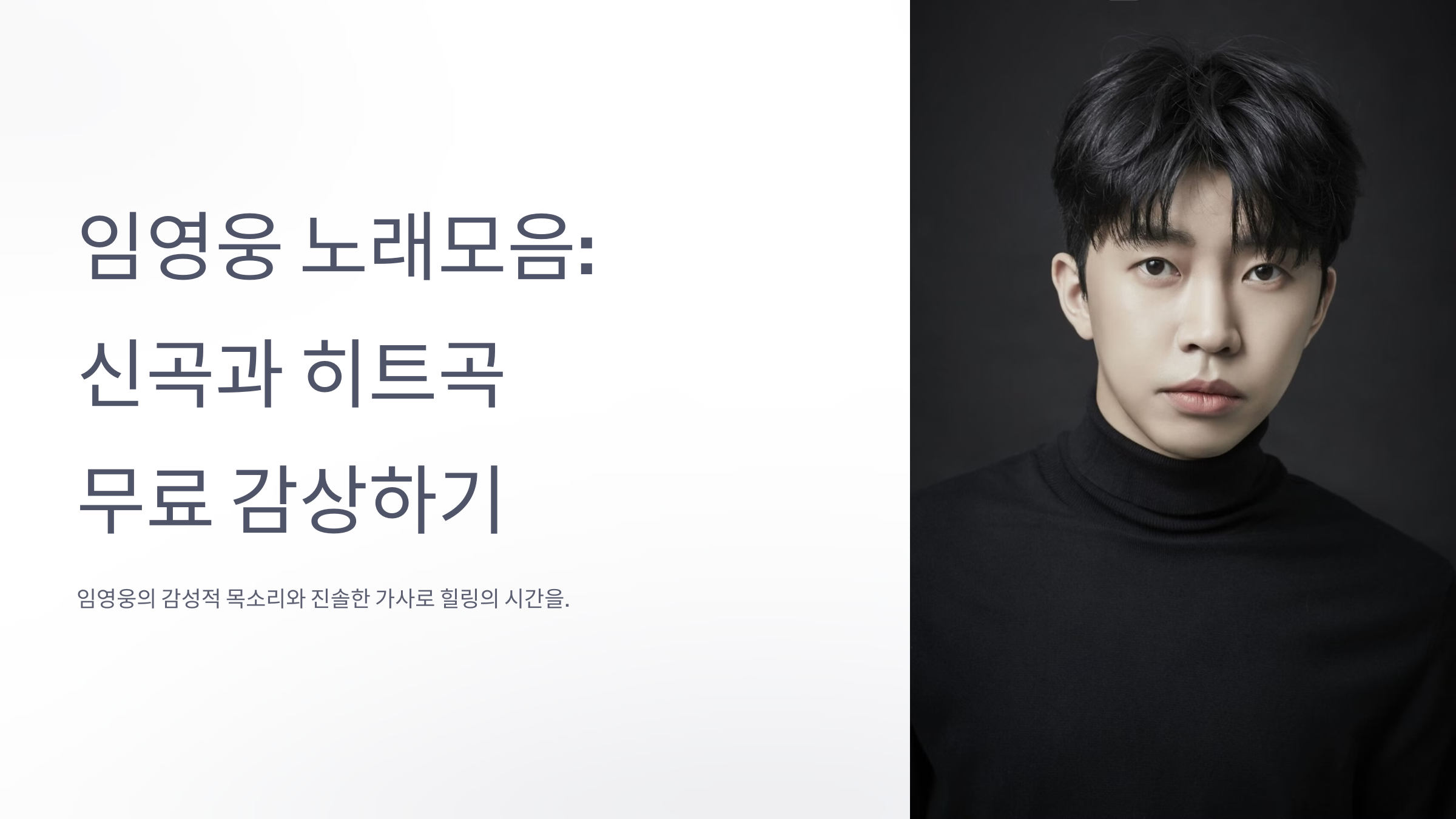 임영웅은 감성적인 목소리와 진솔한 가사로 많은 이들에게 위로와 감동을 주는 가수입니다. 오늘은 임영웅의 신곡과 히트곡을 무료로 감상할 수 있는 다양한 방법을 소개합니다. 그의 음악을 통해 힐링의 시간을 가져보세요!