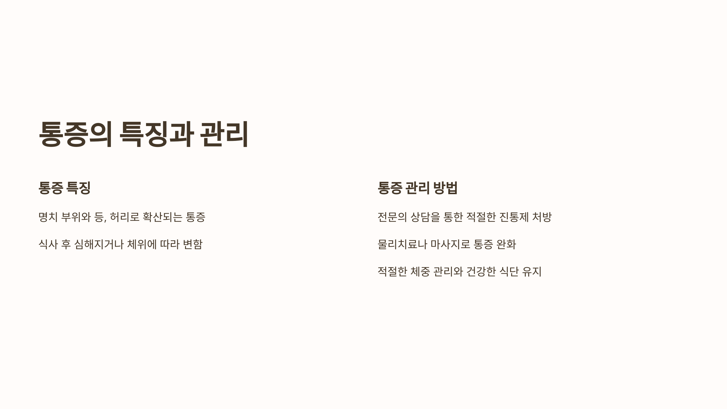 🩺 통증의 특징과 관리