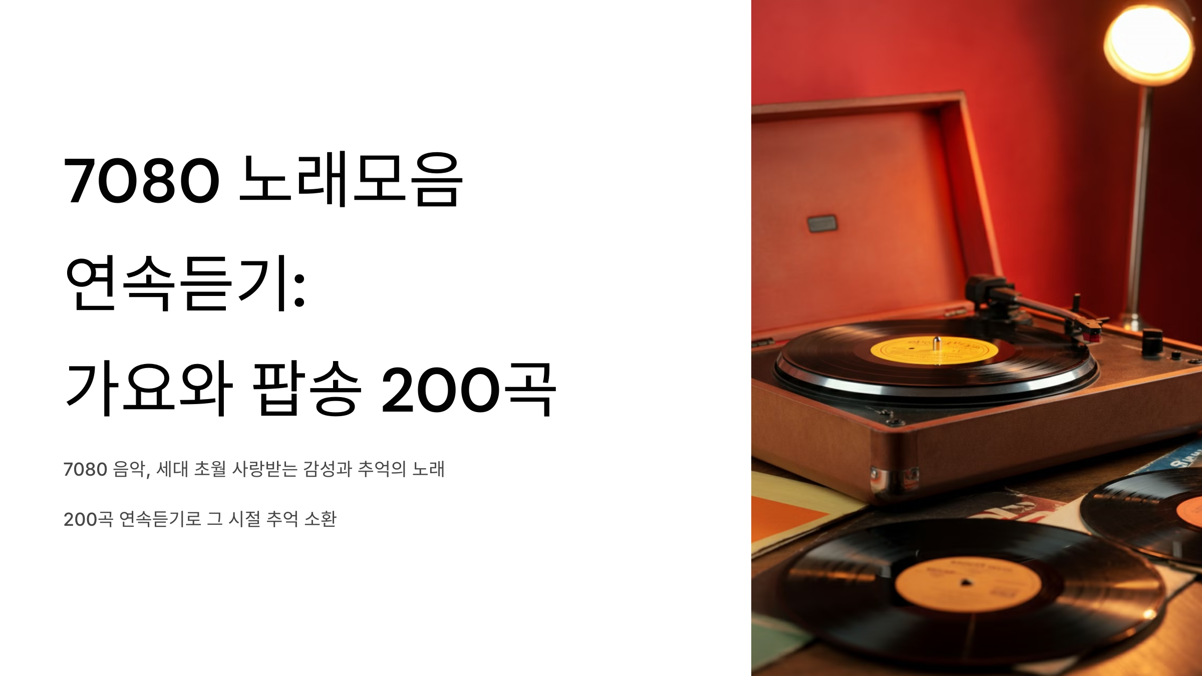 7080 음악은 그 시절의 감성과 추억을 담고 있어 세대를 초월해 많은 사랑을 받고 있습니다. 오늘은 7080 가요와 팝송 200곡을 연속으로 들을 수 있는 방법과 추천 플레이리스트를 소개합니다. 잊지 못할 명곡들과 함께 그 시절로 돌아가 보세요! 😊